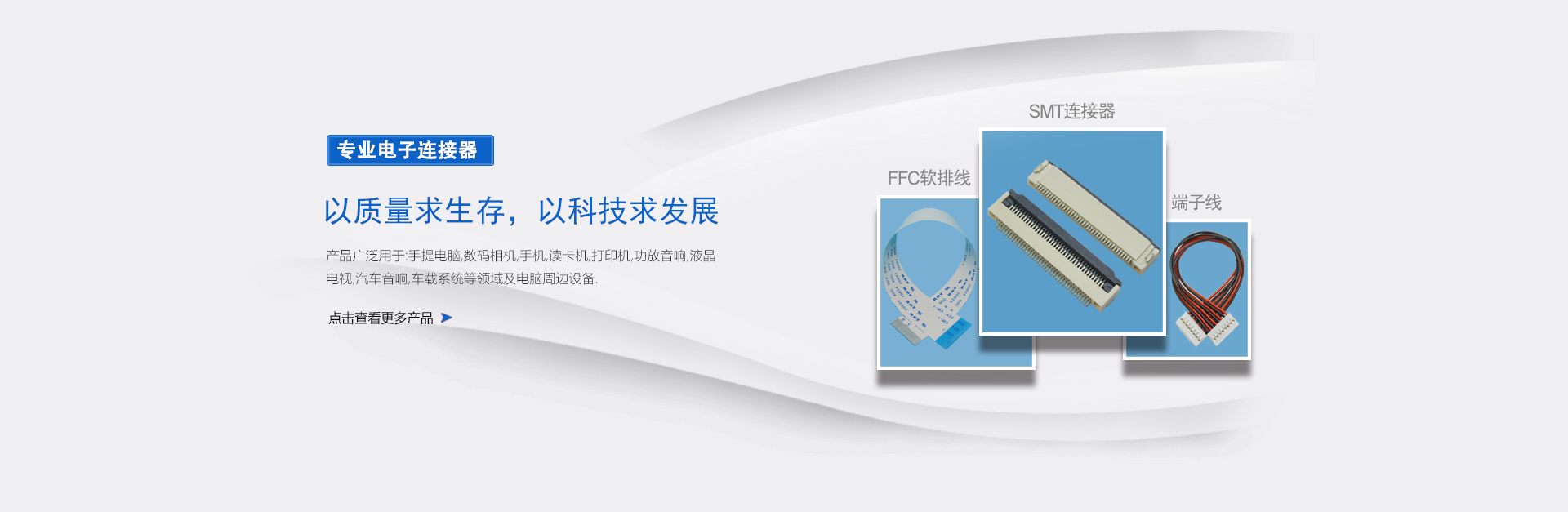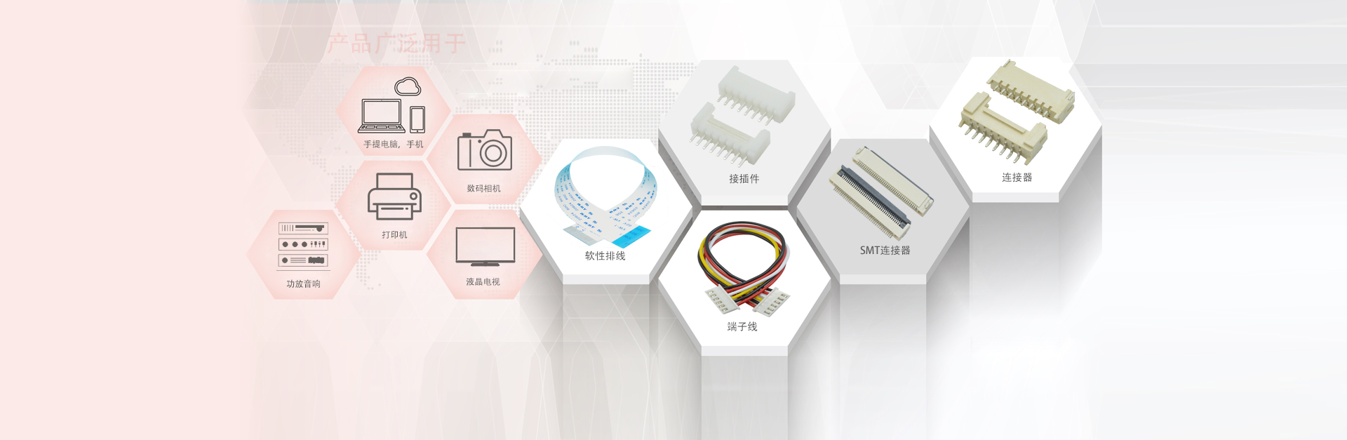 經(jīng)營項目:FPC連接器、接插件、光纖連接器、FFC排線、端子線束等。間距有:0.3mm/0.5mm/0.8mm/1.0mm/1.25mm/1.5mm/2.0mm/2.54mm/3.96mm.......并可以為您開模定制各類精密連接器及配套線束.